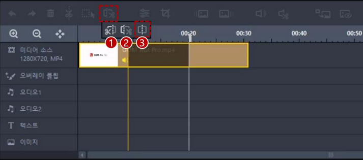 선택한 영역만 유지하고 선택한 영상 부분을 제외한 나머지 영상 부분이 삭제됩니다.