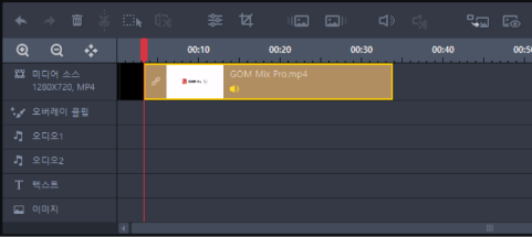 타임라인에서 영상 전환 필터를 적용할 미디어 소스를 선택하세요.