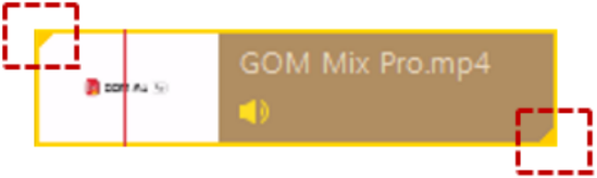 - 페이드 인/페이드 아웃 효과가 적용된 미디어 소스는 각 소스의 좌측 상단과 우측 하단에 삼각형 형태로 표시됩니다.
