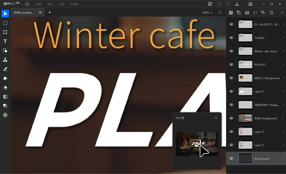 활성화된 미니맵은 기본적으로 편집화면 우측 하단에 자동으로 도킹되어 표시됩니다.