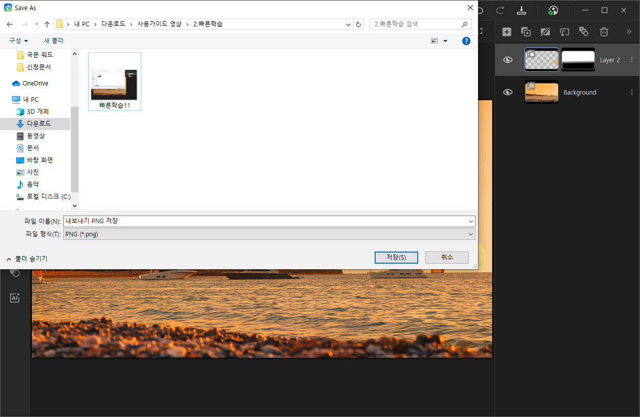 윈도우 탐색기에서 저장할 폴더와 파일 이름, 파일형식을 지정합니다.