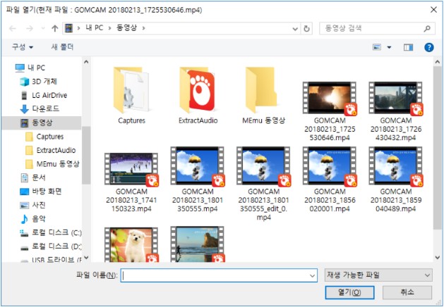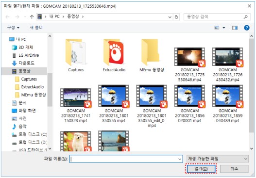 재생하고자 하는 파일을 선택한 후, [열기] 버튼을 클릭하세요.
