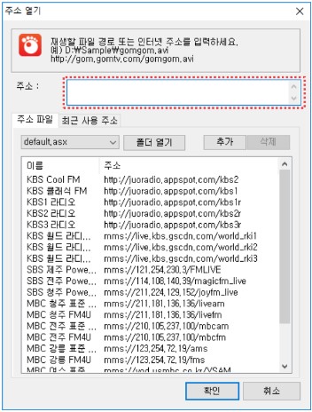 주소 입력칸에 영상이나 방송이 있는 인터넷 주소를 직접 입력하세요.
