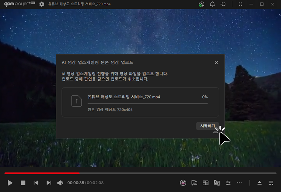 업로드가 완료되면, AI 영상 업스케일링 팝업이 나타납니다.