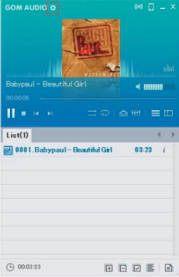 GOM Audioのメインエリアにある環境設定ボタンをクリックします。