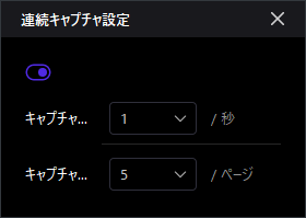 アイコンをクリックすると、連続キャップチャー設定ページが現れます。連続キャップチャーモードの on/offができます。 |