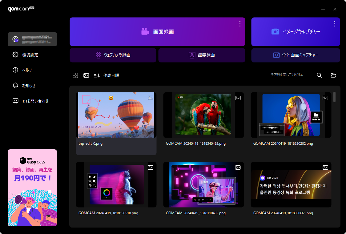 - ② または、タスクバー(システムトレイ)のGom Camアイコンを右クリックするか、ショートカットキーを利用してキャプチャを進行し、キャプチャ完了ポップアップをクリックします。