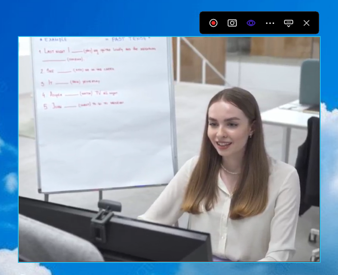 録画領域の画面をキャップチャーして画像ファイルを作ることができます。 描画機能で追加した効果まで含めた画像ファイルとして保存されます。 |