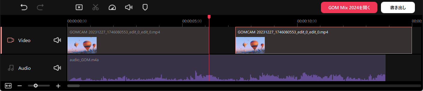 - ⑥ 「GOM Mixから開く」ボタンをクリックすると、現在編集中のプロジェクトをGOM Mixでそのまま編集することができます。GOM Mixではより詳細な機能を楽しめます。
