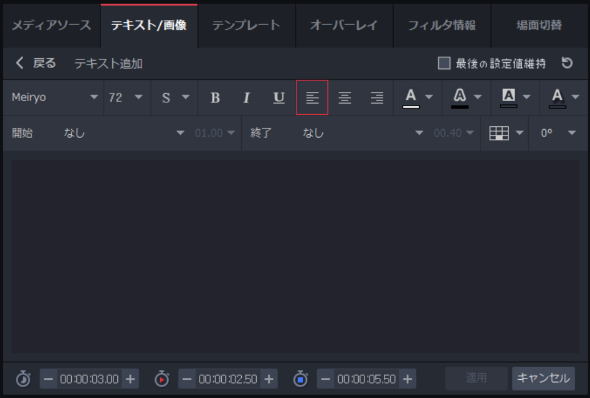 動画にテキストを追加することができます。クリックするとテキスト追加画面が表示されます。