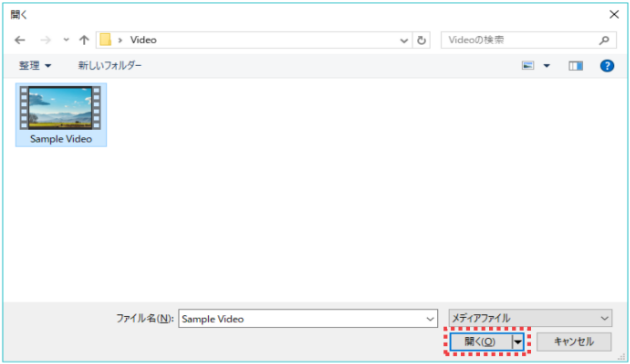 プロジェクトに追加したいメディアファイルを選択した後、開くボタンをクリックしてください。選択したメディアファイルがタイムラインのメディア素材トラックに追加されます。
