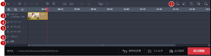 | オーバーレイクリップトラック | 現在のプロジェクトに追加したオーバーレイクリップを確認することができます。 |