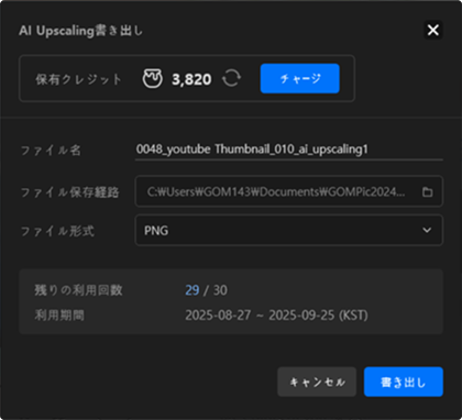 - 1. AI Upscaling設定をすべて完了後、「適用」ボタンをクリック
