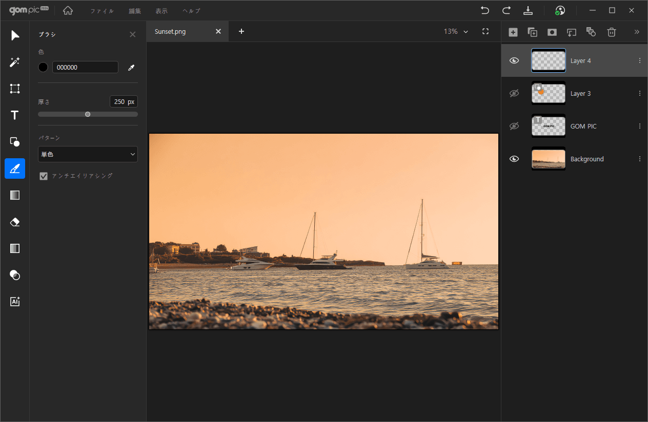 ブラシに色を変更します。 カラーパレットから好きな色を選ぶか、スポイトで画像からカラーを抽出して変更することができます。 |