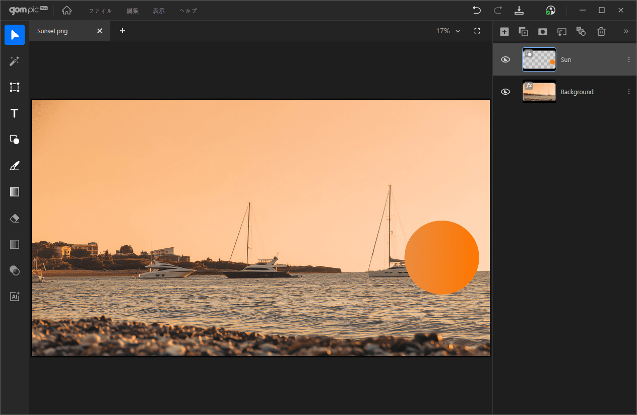 2つの画像を使用して、下の画像の形に合わせて上の画像を挿入できます。図形、写真、テキストなど、フレームになるレイヤーを下に置き、フレームに収めたい画像を上に配置してからクリッピングマスクボタンをクリックすると、効果が適用されます。