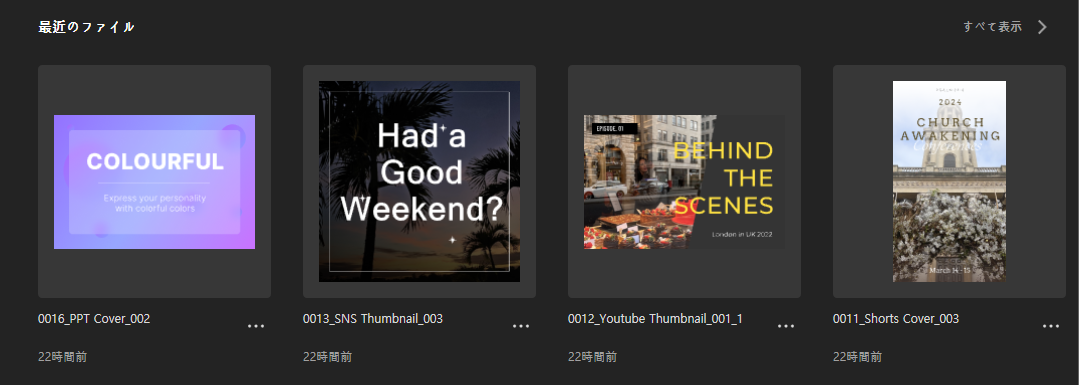 最近修正したプロジェクトを最大4個まで表示します。