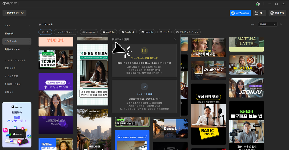 テンプレートの主要コンテンツ(画像、テキスト)のみを素早く直感的に修正し、結果を即座に確認できる簡単な編集モードです。
