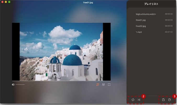 プレイリストのファイルをランダムにシャッフル再生したり、リピート再生することができます。