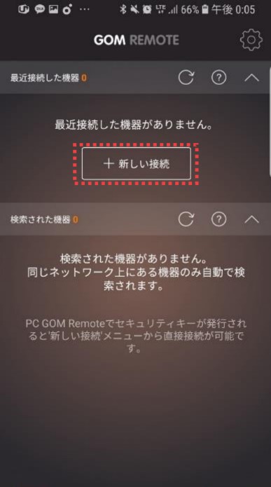 デバイス接続画面が表示されたら、新しい接続ボタンをタップしてください。