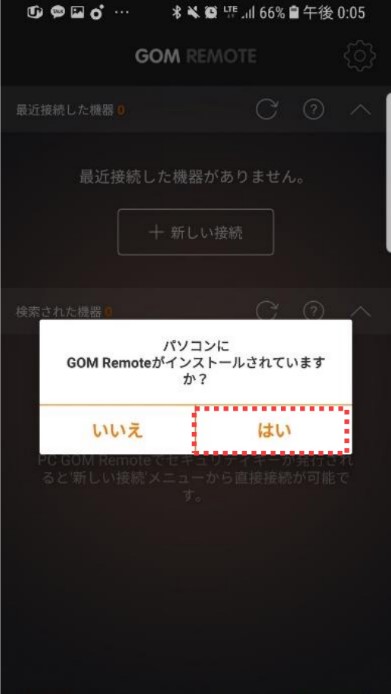 PCにGOM Remoteがインストールされたか確認した後、はいボタンをタップしてください。