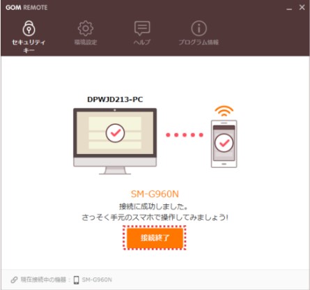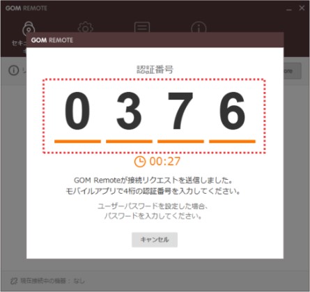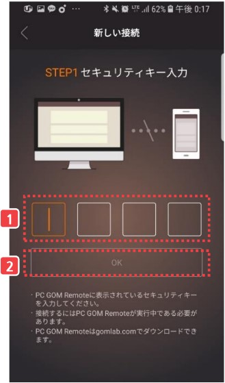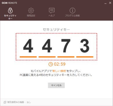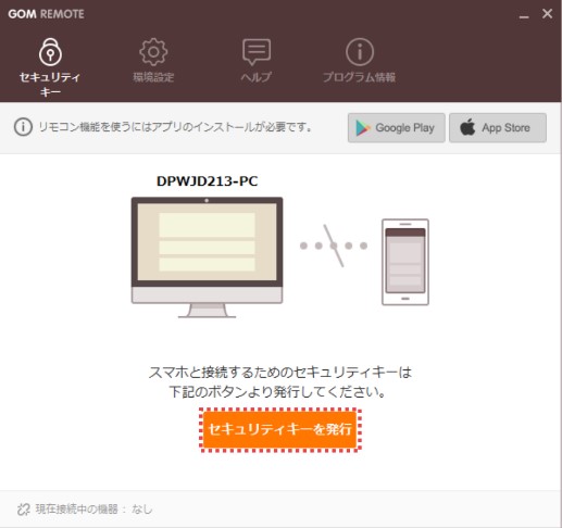 GOM Remoteウィンドウが表示されたら、セキュリティキーを発行ボタンをクリックしてください。