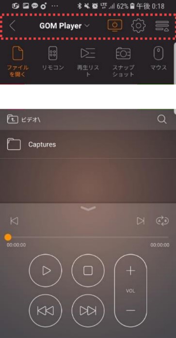 GOM Player Plusのツールバー領域にあるGOM Remote(