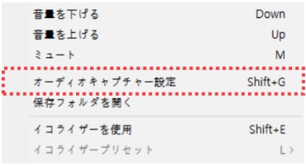 基本メニューで「音声 > オーディオキャプチャー」設定メニューを選択してください。
