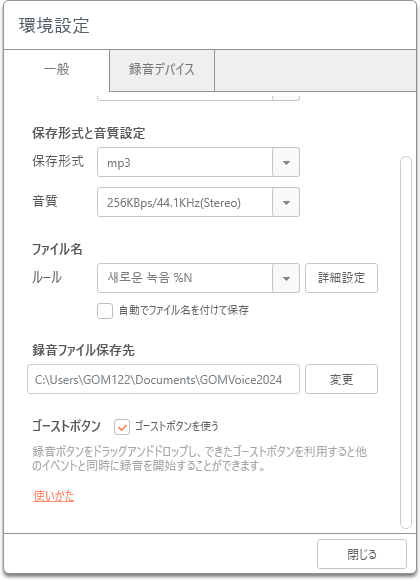同時録音はゴーストボタンを利用し、色々な動画、または音楽などを一緒に録音する機能です。同時録音の方法は次の通りになります。